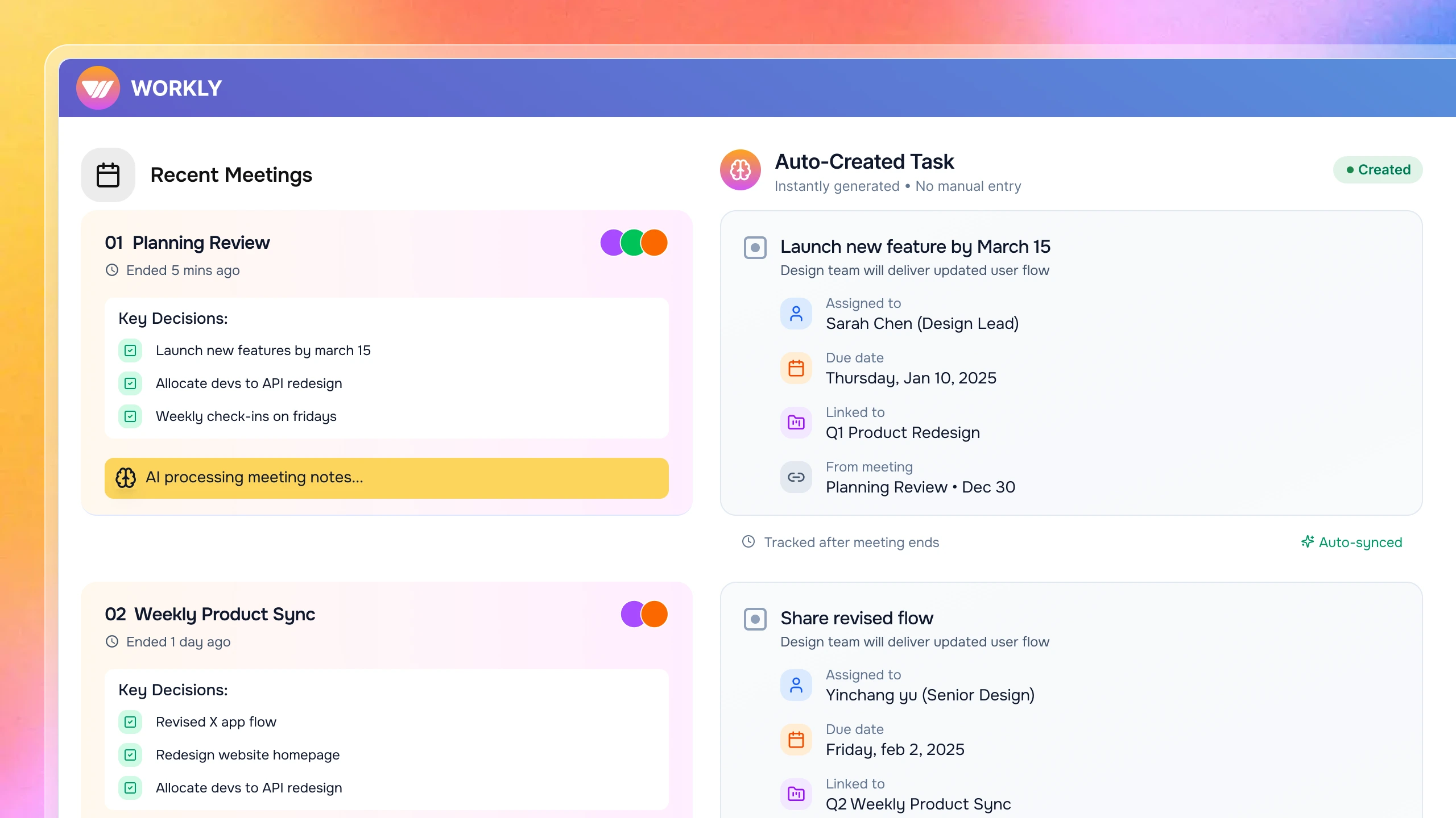 Workly is built as an AI-first work management platform designed to reduce coordination overhead rather than add to it. Instead of layering on another tool, Workly unifies meetings, tasks, and communication into a single system with shared context.