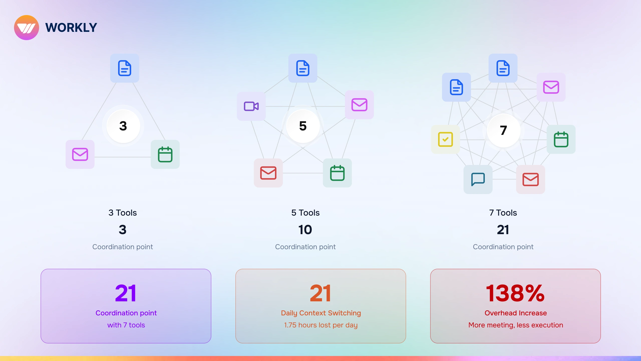 This is where coordination overhead begins to outweigh the benefits of the tools themselves. Productivity slows not because people are working less, but because work is constantly interrupted by context switching and information reconciliation.