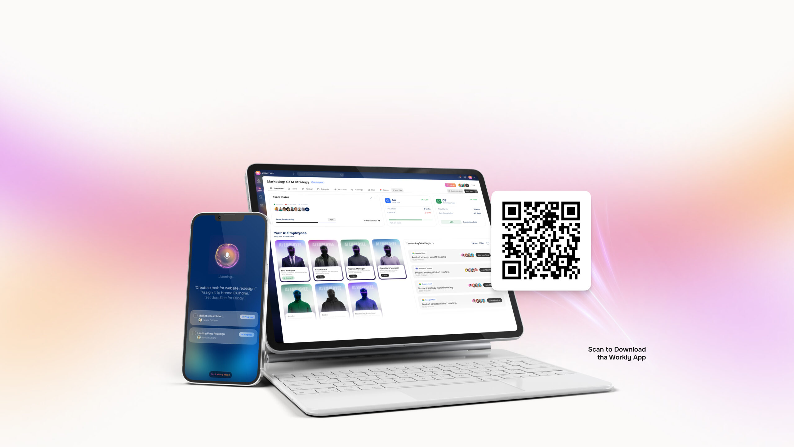 Workly AI Employees stay active across desktop and mobile — tracking decisions, assigning ownership, and driving execution in real time.