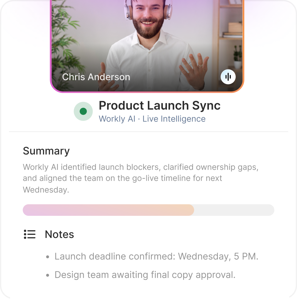 From notes to next steps, Workly’s AI ensures nothing gets missed and everything gets executed.