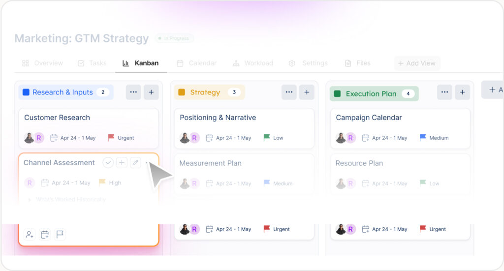 Switch between List, Kanban, Calendar, and Workload while everything stays synced and up to date.