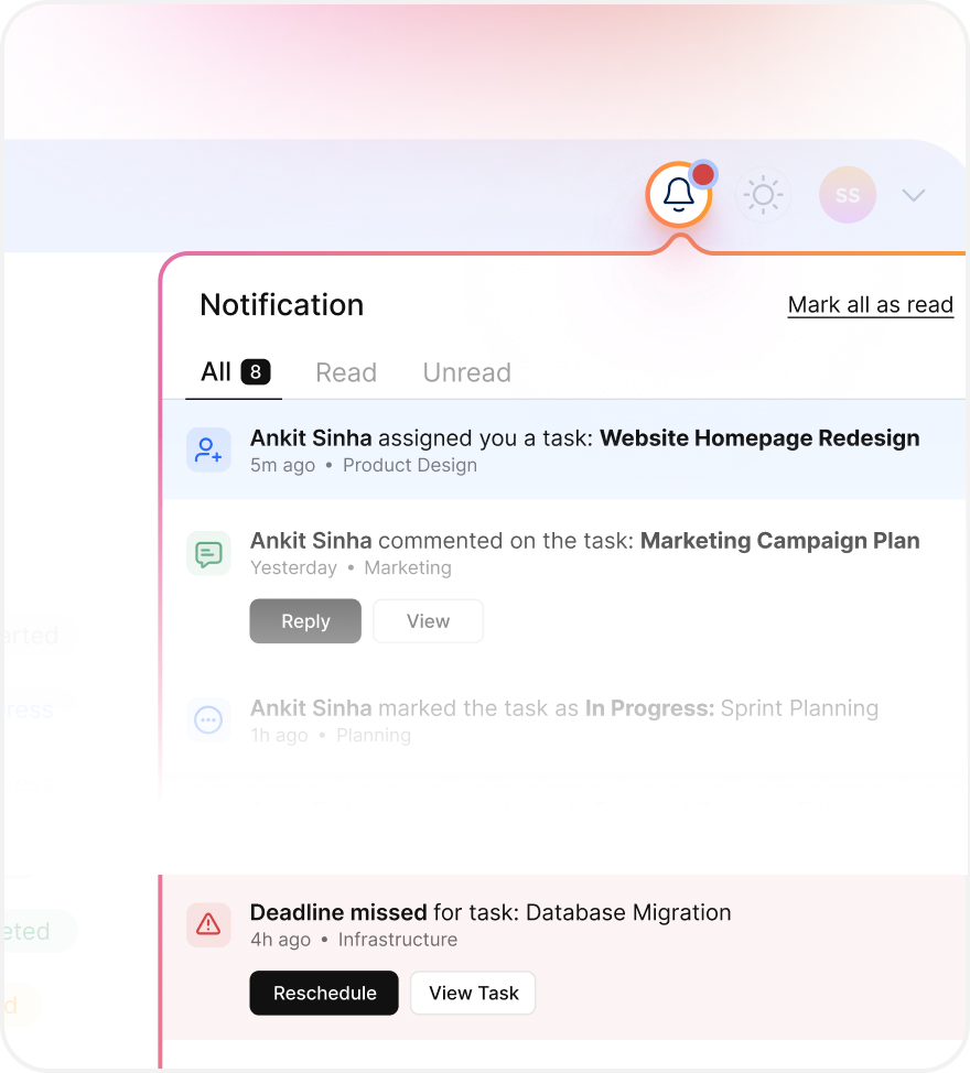 Every update is notified seamlessly ensuring you know who is onto what